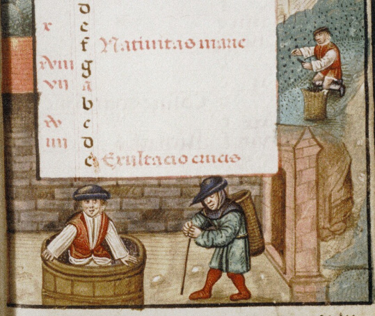 Treading grapes, Oxford, Bodleian Library MS Buchanan e.3, f. 6. Book of Hours made in the late 15th or early 16th century in Rouen, France (© Bodleian Libraries, University of Oxford).