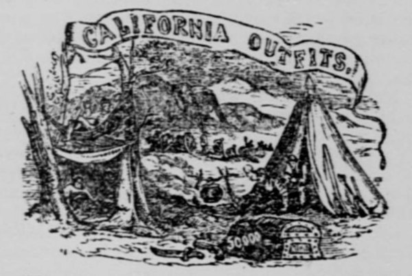 The electrifying news of the discovery of gold at Sutter’s Mill in the winter of 1848 compelled an estimated 80,000 adventurers to pack their bags for California in the following months. How they prepared for the journey—aided by the compilation of lists of provisions and outfitting equipment—depended on their intentions: whether to join the vast majority of travelers who went as itinerant gold hunters, leaving their families at home, or as settlers, picking up and moving with their families, in order to ply their own trade in the land of bonanza, e.g. as doctors or merchants. Continue reading “Outfit for California: Two and a Half Tons of Essentials for the Overland Trail”